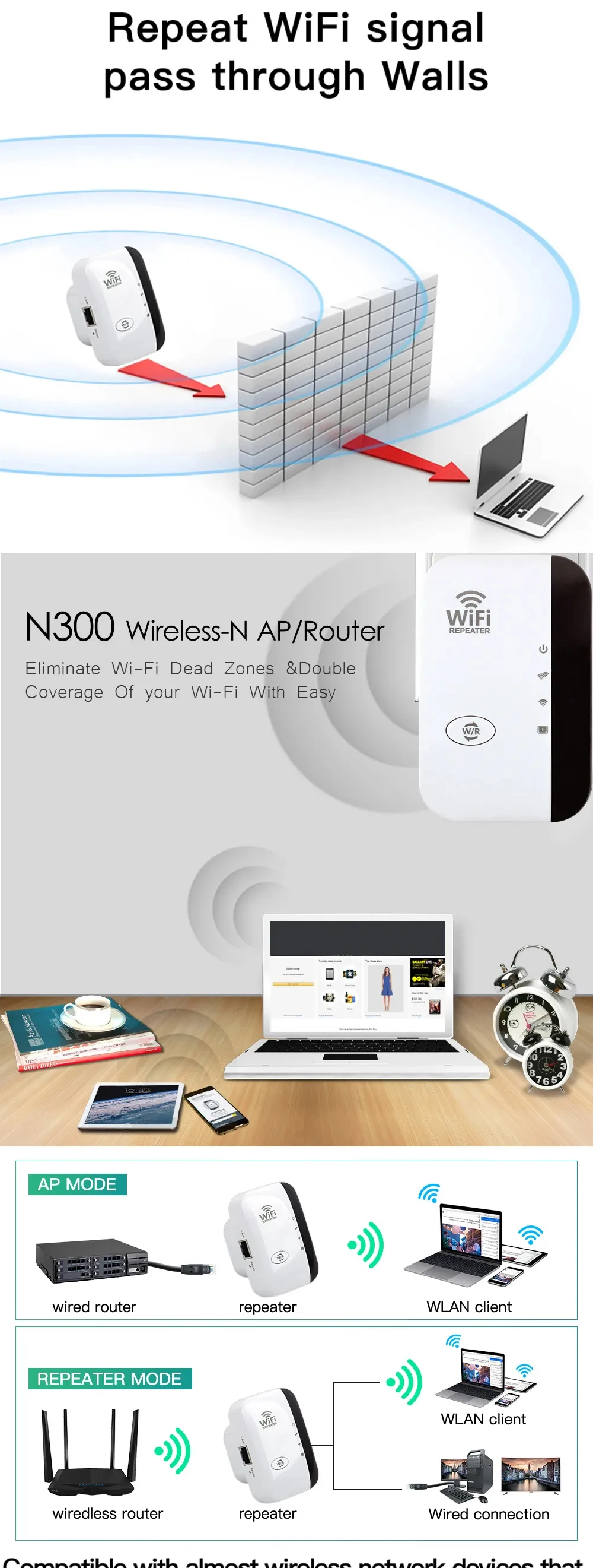 - Multiple Modes: Supports multiple modes including Repeater, Access Point, and Router modes to suit your specific networking needs.